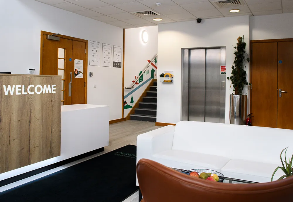 Following concept approval, Evolution managed the full manufacture and installation process. The result is a refreshed, welcoming reception space that blends functionality with a strong brand presence — setting the tone for the rest of the office and leaving a lasting impression on all who walk through the door.